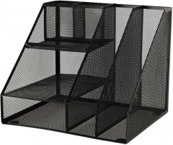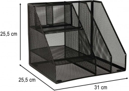 Čierna kovová mriežka dodáva organizéru minimalistický vzhľad, čo ho robí vhodným pre akúkoľvek miestnosť.