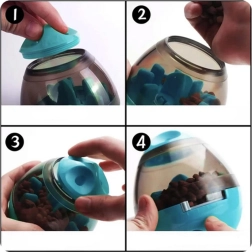 Loptičku otvoríte pootočením, nasypete granuly a nastavíte veľkosť otvoru podľa maškŕt aj požadovanej náročnosti. Jednoduchá obsluha aj čistenie.
