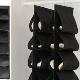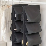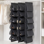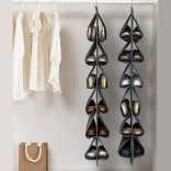 Praktické a elegantné riešenie pre každý šatník. Závesný organizér na topánky s 12 vreckami ukladá páry vertikálne, takže získate viac miesta a lepší prehľad. Odolná látka so zosilnenými švami chráni obuv pred odieraním a prachom, kovový háčik zas zaručí stabilné zavesenie.
