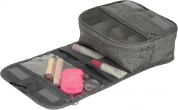 Šedá cestovná kozmetická taška je dokonalým riešením pre uloženie vašich obľúbených kozmetických potrieb na cestách. Vďaka priestrannej hlavnej priehradke a štyrom menším vreckám budete mať všetko prehľadne usporiadané.