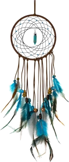 Lovec snov - lapač snov. Výborná dekorácia do spálne a amulet, ktorý prináša šťastie a odháňa zlé sny. Podľa indiánskych kmeňov hustá sieť účinne zastavuje nočné mory a prepúšťa iba dobré sny. Všetky strašidelné nočné mory sú zachytené v sieti a stekajú po perách.