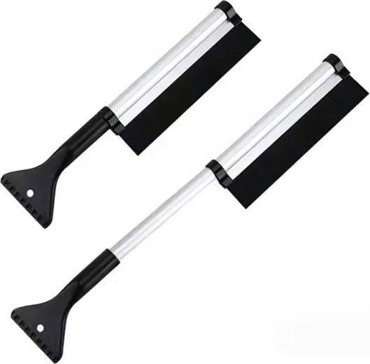 Dlhá teleskopická škrabka na okná automobilov. Vybavená mäkkou kefou na odstraňovanie snehu z vozidla. Vďaka možnosti vysunutia je odstraňovanie snehu zo strechy alebo čelného skla oveľa jednoduchšie. Robustný plast, z ktorého je škrabka vyrobená, uľahčuje odstránenie zvyškov námrazy. Dvojúčelová škrabka je nepostrádateľným nástrojom každého vodiča v chladných zimných mesiacoch.