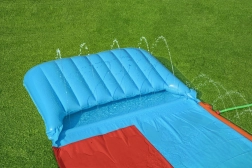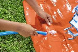 Rýchle a jednoduché nastavenie. Stačí rozvinúť šmýkačku na trávnik a pripojiť hadicu. Špeciálne upevnenia zaisťujú, že šmýkačka zostane pevne na svojom mieste.