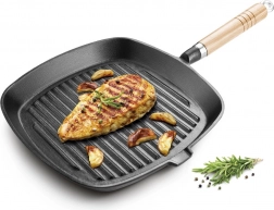Liatinová grilovacia panvica je ideálna na prípravu šťavnatých steakov, zeleniny aj rýb. Kvalitná liatina zabezpečuje vynikajúcu akumuláciu a rovnomernú vodivosť tepla, takže suroviny sa prepečú rovnomerne a zostávajú šťavnaté. Vnútorné rebrované dno vytvára typické grilovacie prúžky a umožňuje varenie s minimom oleja.