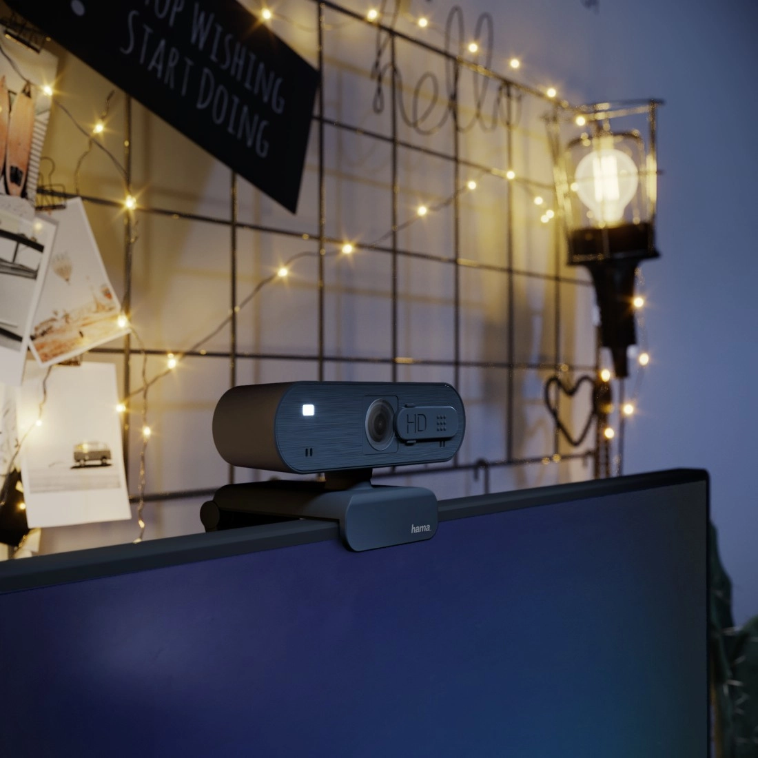 Spoľahlivá webkamera Hama na prácu z domu aj videohovory v špičkovej kvalite. Ponúka Full HD 1080p obraz, autofokus pre vždy ostré zábery, stereofónny mikrofón pre čistý hlas, automatickú úpravu osvetlenia a integrovanú krytku súkromia.