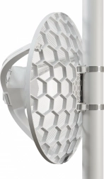 Odolná konštrukcia so zväčšeným chladičom bráni prehrievaniu, mriežkový tanier zabezpečuje minimálny odpor vetru a stabilitu. Inštalácia je rýchla: montáž na stĺp/stožiar, napájanie cez Gigabit Ethernet s PoE (súčasťou je injektor), pripojenie cez MicroSIM. Vo vnútri pracuje 64-bit dvojjadrový ARM pre plynulú prevádzku a nízku latenciu.
