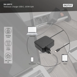 Táto univerzálna nabíjačka DIGITUS nahrádza originálny napájací adaptér a prináša výhody modernej technológie GaN – vyššia účinnosť, menej tepla a kompaktnejšie rozmery. PD 3.0 až 100 W zaistí stabilné napájanie pre väčšinu notebookov s USB‑C (napr. Apple MacBook, Lenovo ThinkPad, HP Spectre, ASUS, Acer, Dell, Xiaomi) aj pre smartfóny a tablety (Samsung Galaxy, Google a i.).
