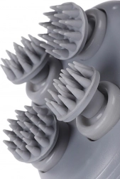 Štyri otočné masážne hlavy so silikónovými výstupkami napodobňujú hnietacie pohyby prstov a uvoľňujú napätie vo vlasovej pokožke aj na šiji.