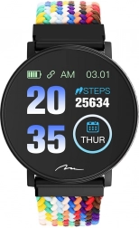 Inteligentný náramok Thaiti 2 kombinuje moderný dizajn s funkcionalitou, vďaka čomu je ideálny pre každodenné nosenie aj športové aktivity. Je vybavený 1,3 palcovým farebným IPS TFT displejom a dvomi pohodlnými remienkami - jeden farebný elastický a druhý čierny s Velcro uzáverom. Pomáha sledovať zdravie vďaka meraniu srdcového tepu, krvného tlaku a hladiny kyslíka v krvi. Navyše poskytuje funkcie ako počítadlo krokov, monitor spánku a výpočet spálených kalórií.