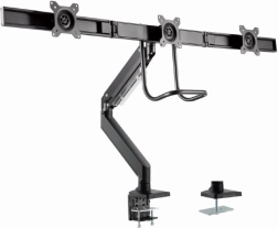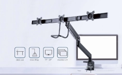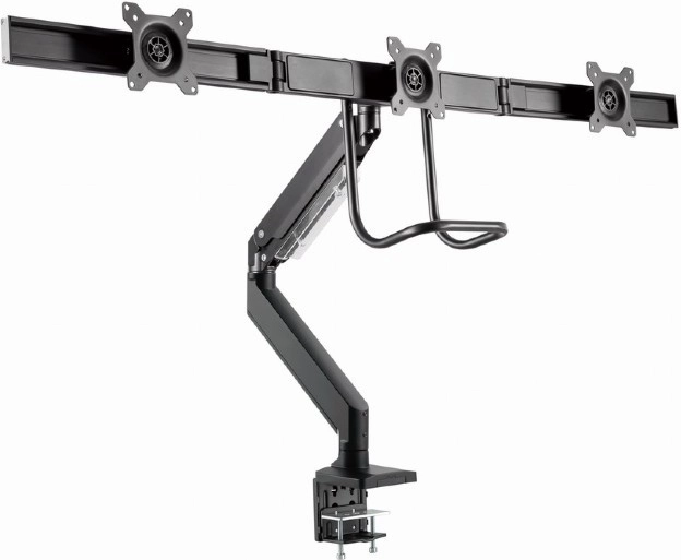 Tento nastaviteľný držiak na monitory umožňuje pohodlné umiestnenie troch obrazoviek vedľa seba, čo je ideálne pre profesionálne pracovné prostredie. Vďaka robustnému kovovému prevedeniu a flexibilným ramenám ponúka maximálnu stabilitu a prispôsobivosť.
