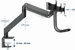 Nastaví obrazovky na ideálnu výšku a uhol, čím redukuje záťaž na krk a oči. Je kompatibilný s väčšinou LCD monitorov do veľkosti 27 palcov a podporuje zariadenia s hmotnosťou až 6 kg vďaka pevným pružinám.
