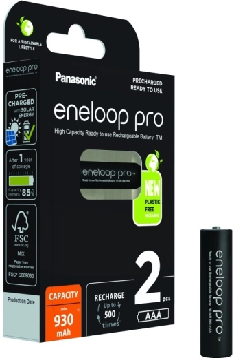 Prémiové akumulátory ENELOOP PRO vo veľkosti AAA s minimálnou kapacitou 930 mAh spoľahlivo napájajú bezdrôtové myši, klávesnice aj drobné domáce prístroje. Ponúkajú až 500 nabíjacích cyklov, udržia až 85 % kapacity po 1 roku, fungujú aj v mraze do −20 °C a sú dodávané prednabité solárnou energiou v balení bez plastu.