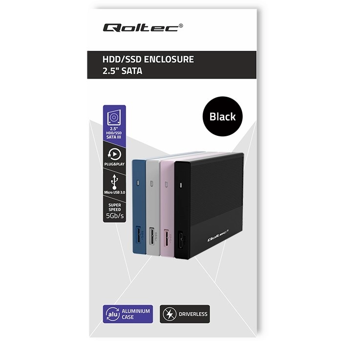 Kompaktný a elegantný hliníkový externý 2,5" box pre disky SSD aj HDD ponúka rýchle rozhranie USB 3.0 so spoľahlivou prenosovou rýchlosťou až 5 Gb/s, kompatibilitu so SATA3 a maximálnu kapacitu disku 2 TB. Vďaka Plug&Play funguje bez inštalácie ovládačov a je kompatibilný s Windows, macOS aj Linux.