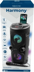 Praktičnosť a ďalšie funkcie prichádzajú s pohodlnou rukoväťou pre jednoduché prenášanie a špeciálnou základňou pre mobilné telefóny. Ďalej je vybavený prehľadným LED displejom a 6.3mm mikrofónovým vstupom, čo zvyšuje jeho užitočnosť.