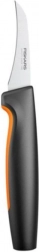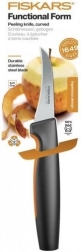 Fiskars Functional Form zahnutý škrabací nôž je vyrobený pre jednoduchú údržbu a každodenné použitie. Má ergonomickú rukoväť s povrchom SoftGrip na spodnej strane a veľkú ochranu na prsty, čo zaisťuje pohodlné a bezpečné držanie v ruke. Tento nôž je ľahký na skladovanie a údržbu, možno ho umývať v umývačke riadu.