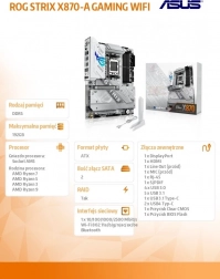 Základná doska ROG Strix X870-A Gaming WiFi je moderným riešením pre každého, kto chce posunúť svoj počítač na vyššiu úroveň. Vďaka podpore pamätí DDR5 a možnostiam PCIe 5.0 je táto doska pripravená zvládnuť náročné úlohy a poskytnúť špičkový výkon. Obsahuje tiež dva porty USB4, čo zaisťuje rýchle a efektívne pripojenie periférií.