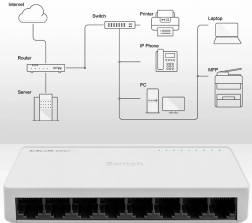 Získajte viac zo svojej siete s kompaktným prepínačom QOLTEC. Osem portov RJ45 umožní súčasne prepojiť až sedem koncových zariadení a jeden uplink do routera či modemu. Prepínač podporuje rýchlosti 10/100 Mb/s (Fast Ethernet), pracuje v plnom aj poloduplexe a vďaka riadeniu toku IEEE 802.3x zaručuje plynulý a spoľahlivý prenos dát.