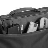 Striedmy, klasický dizajn v čierno‑sivej kombinácii sa hodí do kancelárie aj na stretnutia. Nastaviteľný ramenný popruh a pohodlné madlo zabezpečujú komfortné nosenie a univerzálne využitie pri práci aj na cestách.
