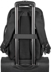 Vetrané chrbty, nastaviteľné popruhy s hrudným pásom a pás na upevnenie k teleskopickému madlu kufra.