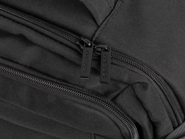 - 3 hlavné komory (notebook, odevy, príslušenstvo)