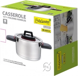 Hrniec je vybavený sklápacími rukoväťami, ktoré uľahčujú skladovanie a šetria miesto v kuchyni. Je kompatibilný so všetkými typmi varných dosiek vrátane indukčných, čo ho robí všestranným pomocníkom pre každú kuchyňu. Vnútorná odmerná stupnica je praktickým doplnkom pre presné meranie tekutín.