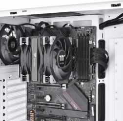 Dva kvalitné 120 mm ventilátory v push-pull konfigurácii zvyšujú statický tlak a zlepšujú prúdenie vzduchu cez rebrá chladiča pre účinné chladenie aj pri záťaži.