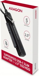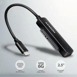 Adaptér AXAGON FASTPort2 umožňuje jednoduché pripojenie a rýchlu výmenu SATA 2.5" HDD či SSD vďaka pripojeniu cez kábel USB-C s dĺžkou 20 cm. Vďaka podpore USB 3.2 Gen 1, ponúka rýchlosť prenosu až 5 Gbps, a funkcia Plug & Play zabezpečuje automatické rozpoznanie zariadenia.