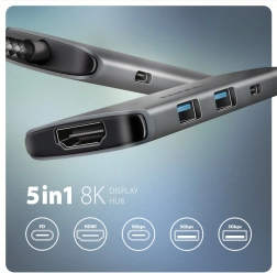 Hub je vyrobený z odolného hliníkového šasi pre lepšie chladenie. Funkcie Plug And Play a Hot Plug umožňujú jednoduché pripojenie a odpojenie zariadení bez zložitej inštalácie. Pripojenie k telefónu cez USB-C je tiež možné, čo umožňuje prepojenie s klávesnicou, myšou alebo monitorom.
