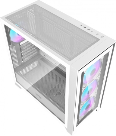 Vytvorte si čistú a výkonnú zostavu s dôrazom na dizajn. Predný aj bočný panel z tvrdeného skla zvýrazní vaše komponenty a RGB efekty, zatiaľ čo premyslené prúdenie vzduchu zaistí stabilné teploty aj pri intenzívnej záťaži. Skriňa podporuje dosky ATX / M-ATX / ITX, grafické karty do 395 mm a chladiče CPU do 185 mm.
