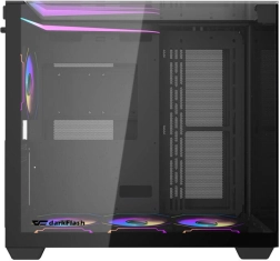 Darkflash skriňa je modernou voľbou pre každého, kto hľadá kvalitu a štýl. Tento počítačový kryt má priehľadný sklenený bočný panel, ktorý vám umožní pohľad na starostlivo usporiadané vnútorné komponenty. S RGB osvetlením a viacerými možnosťami vetrania je navrhnutý pre skvelý estetický dojem a efektívne chladenie.