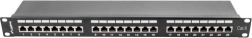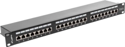 Tento tienený patch panel Cat6 je ideálny pre hlavné aj medzilehlé distribučné body v moderných dátových sieťach. Slúži na ukončenie a organizáciu krútenej dvojlinky v 19" rack skriniach, kde zabezpečuje čisté vedenie a stabilné pripojenie. Kovová konštrukcia a čierne prevedenie RAL9004 zaručujú odolnosť a profesionálny vzhľad.