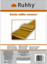 Behúň na stôl Ruhhy zlatej farby je skvelou voľbou pre dekoráciu stolu pri akejkoľvek slávnostnej príležitosti. Je vyrobený z hustej saténovej tkaniny, ktorá je odolná voči poškodeniu a zaisťuje tak viacsezónnu použiteľnosť.