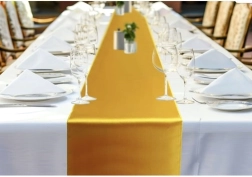 Zlatý saténový behúň dokáže vylepšiť každé stolovanie vďaka svojmu elegantnému vzhľadu a vysokej kvalite materiálu, čo zaručuje dlhú životnosť a odolnosť.
