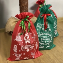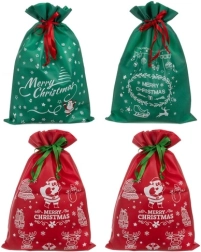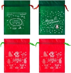 Tento set obsahuje štyri tašky - dve červené a dve zelené, každá s výraznými sviatočnými potlačami, vrátane Santa Clausa a snehových vločiek. Každá taška je vybavená šnúrkami pre jednoduché a rýchle zatváranie, čo je veľmi užitočné počas hektického sviatočného obdobia.