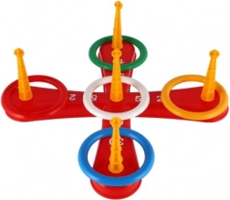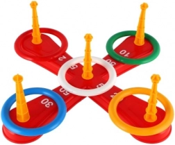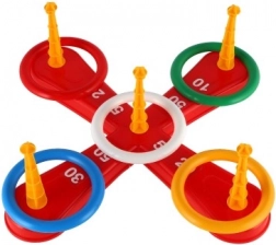 Hra obsahuje krížovú základňu a pestré kruhy pre zábavné hádzanie.