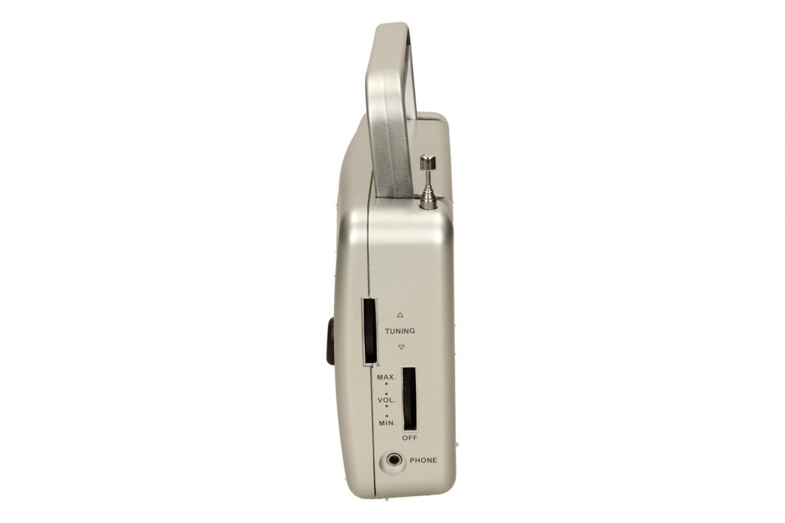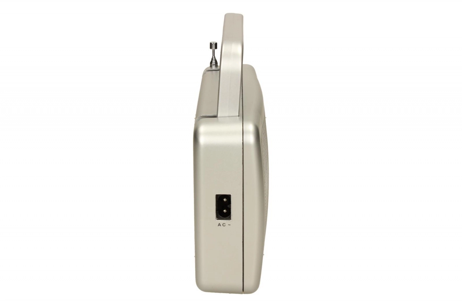 Strieborné rádio s ľahko čitateľným ovládacím panelom ponúka skvelý výkon a elegantný vzhľad.