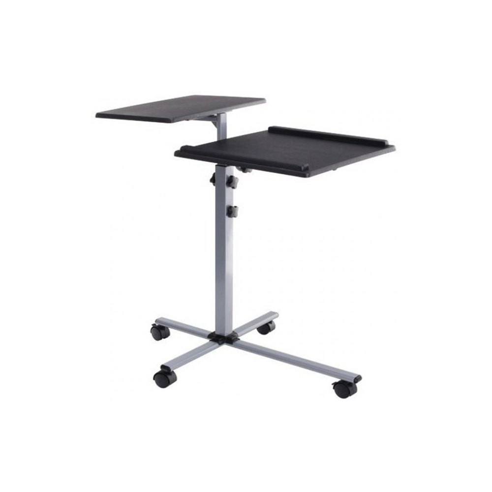 Tento mobilný stôl je univerzálnym pomocníkom pri prezentáciách vo firmách či na školeniach. Jeho delená plocha poskytuje dostatok miesta ako pre projektor, tak i notebook, a výškovo nastaviteľná plocha umožňuje prispôsobenie potrebám užívateľa. Okrem toho disponuje rámami na jednej z políc, ktoré bránia skĺznutiu uloženého zariadenia.