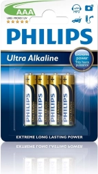 Vysoký výkon alkalických batérií Philips AAA bez obsahu kadmia, ortuti a olova pre dlhodobú energiu v každodenných zariadeniach.