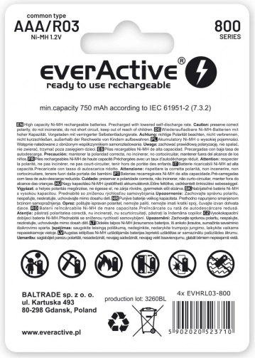 Nabíjateľné batérie AAA R03 800 mAh v prevedení Ready To Use sú z výroby prednabité, takže ich môžete ihneď vložiť do zariadenia. Séria Silver Line nadväzuje na kvalitu radu Professional a zároveň prináša skvelý pomer ceny a výkonu.