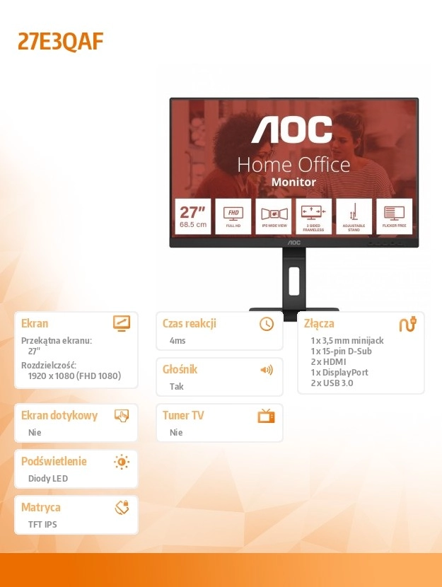Vysoká kvalita obrazu a verné zobrazenie farieb zaručuje IPS panel, ktorý ponúka široké pozorovacie uhly a presnú reprodukciu farieb. Monitor je vybavený podporou HDMI a DP konektivity pre jednoduché pripojenie k rôznym zariadeniam.