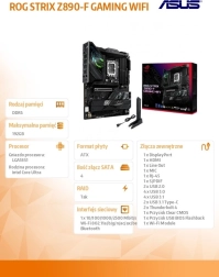 Postavte si výkonnú zostavu s doskou ROG STRIX Z890-F GAMING WIFI, ktorá kombinuje najnovšie štandardy konektivity, pokročilé napájanie a inteligentné riadenie vďaka AI funkciám. S podporou PCIe 5.0 pre grafické karty a SSD a portmi Thunderbolt 4 získate bleskové prenosy dát aj špičkovú rozšíriteľnosť.