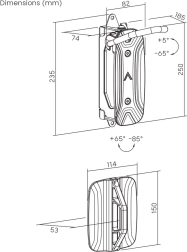 - Otočné uloženie: regulácia otáčania od −85° do +65° pre ideálnu polohu pri stene.