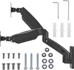Vytvorte si ergonomické pracovisko s nástenným dvojramenným držiakom, ktorý umožňuje jednoducho nastaviť výšku, náklon aj natočenie oboch monitorov. Vďaka mechanickej pružine je polohovanie plynulé a presné, takže si obrazovky prispôsobíte na ideálnu úroveň očí pre pohodlnú prácu aj zábavu.
