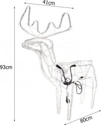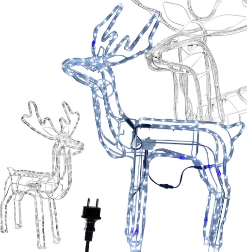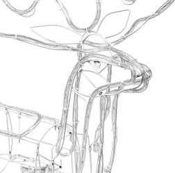 Tento svietiaci jeleň je ideálnou voľbou na vianočnú výzdobu. Jeho robustná kovová konštrukcia zabezpečuje stabilitu, zatiaľ čo vysoká kvalita LED diód ponúka nádherné studené biele svetlo. Vďaka pohyblivej hlave jeleňa vytvára dynamický efekt, ktorý zaujme každého okoloidúceho.