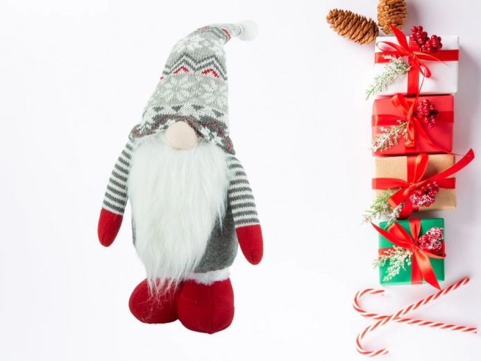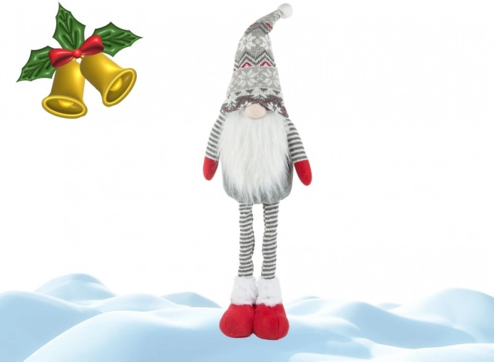 Vytvorte si doma kúzelnú zimnú scénu so škriatkom, ktorý rastie spolu s vašou dekoráciou. Vďaka teleskopickým nohám ľahko nastavíte výšku od 50 do 70 cm, takže perfektne zapadne na poličku, komodu, okenný parapet aj pod vianočný stromček. Mäkučké textilné spracovanie, dlhá biela brada a vzorovaná sivá čiapka dodajú interiéru severské čaro.