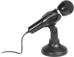 Súčasťou je stabilný stolový stojan, ktorý drží mikrofón na mieste, a vďaka odnímateľnej konštrukcii ho môžete kedykoľvek vziať do ruky – napríklad pri karaoke alebo moderovaní. Vstavaný vypínač umožní okamžité stlmenie, zatiaľ čo plug & play zabezpečí bezstarostné zapojenie bez ovládačov.
