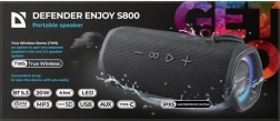 Užite si obľúbenú hudbu kdekoľvek s DEFENDER Enjoy S800. Tento prenosný reproduktor kombinuje výkon 20 W s čistým a dynamickým zvukom, doplneným o atraktívne LED efekty. Vďaka Bluetooth sa rýchlo pripojíte k telefónu, tabletu či notebooku a streamovanie je otázkou okamihu.