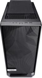 Predný panel s asymetrickým mriežkovým vzorom nielen dodáva skrini unikátny vzhľad, ale zároveň zabezpečuje efektívne chladenie komponentov.
