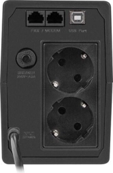 Súčasťou výbavy je AVR – automatická korekcia napätia, ktorá vyrovnáva krátkodobé poklesy a prepätia v sieti, a ochrana RJ‑11/RJ‑45 pre telefónne a dátové linky. Ochrana proti preťaženiu chráni UPS aj pripojené spotrebiče a tichý režim minimalizuje akustické upozornenia pri prevádzke na batériu – ideálne do obývačky či pracovne.