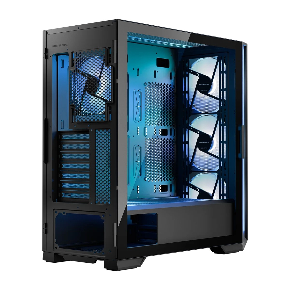 Objavte skrinku MODECOM Horizon, ktorá spĺňa všetky požiadavky na solidnú a funkčnú počítačovú skrinku. Predný panel obsahuje tri 140mm ARGB ventilátory pre efektívne nasávanie vzduchu, zatiaľ čo zadný 120mm ARGB ventilátor sa stará o odvod teplého vzduchu.
